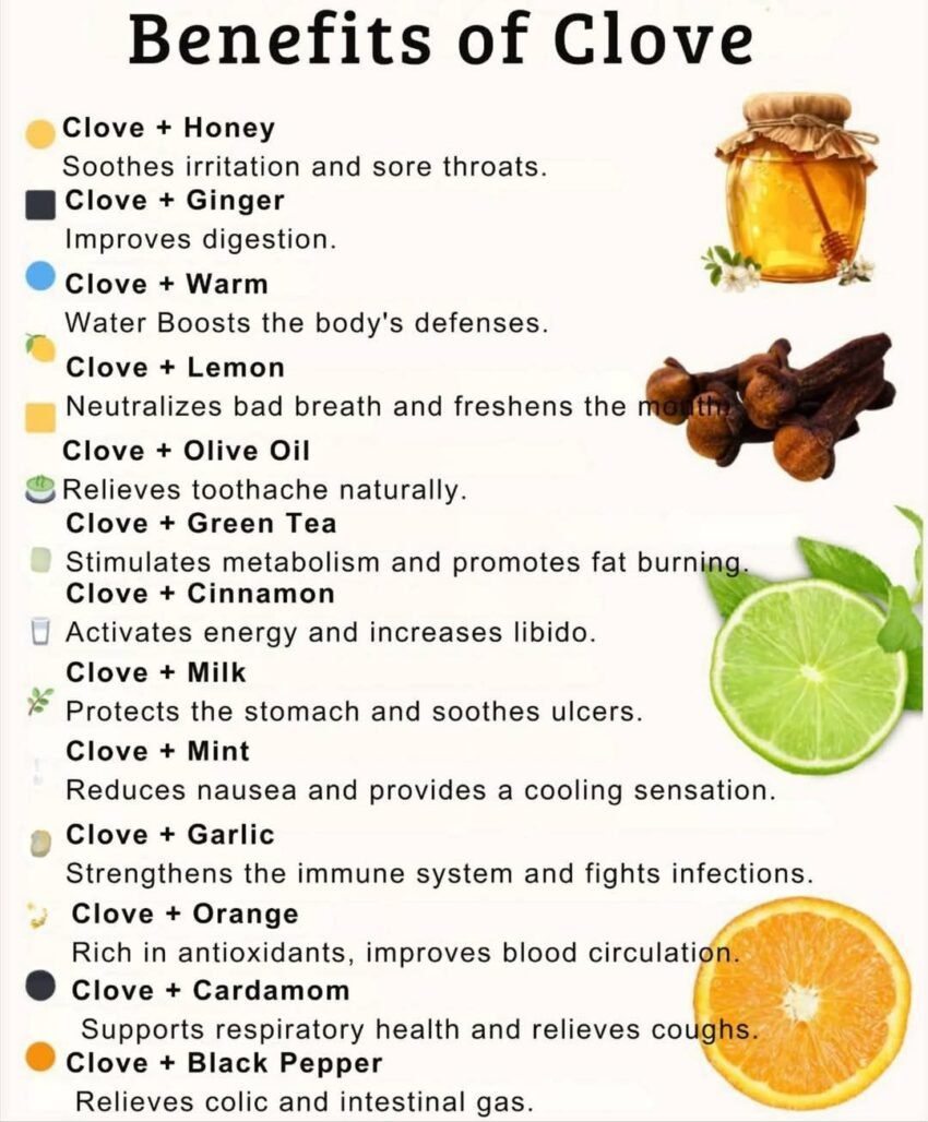 Cloves are often used in herbal remedies for coughs, colds, and respiratory congestion. Their warming and soothing properties may help ease throat irritation and support clearer breathing.