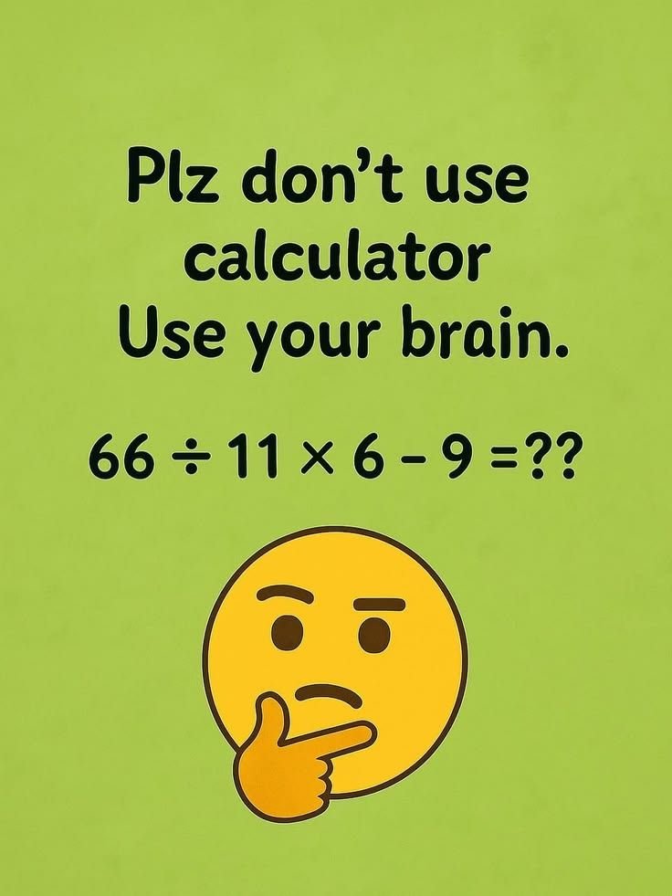 Test your brain! Solve 66 ÷ 11 × 6 − 9 step by step without a calculator and sharpen your mental math skills.