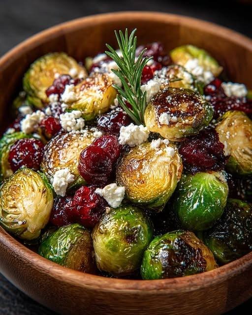 Caramelized Brussels Sprouts with Feta, Walnuts, and Cranberry-Honey Glaze