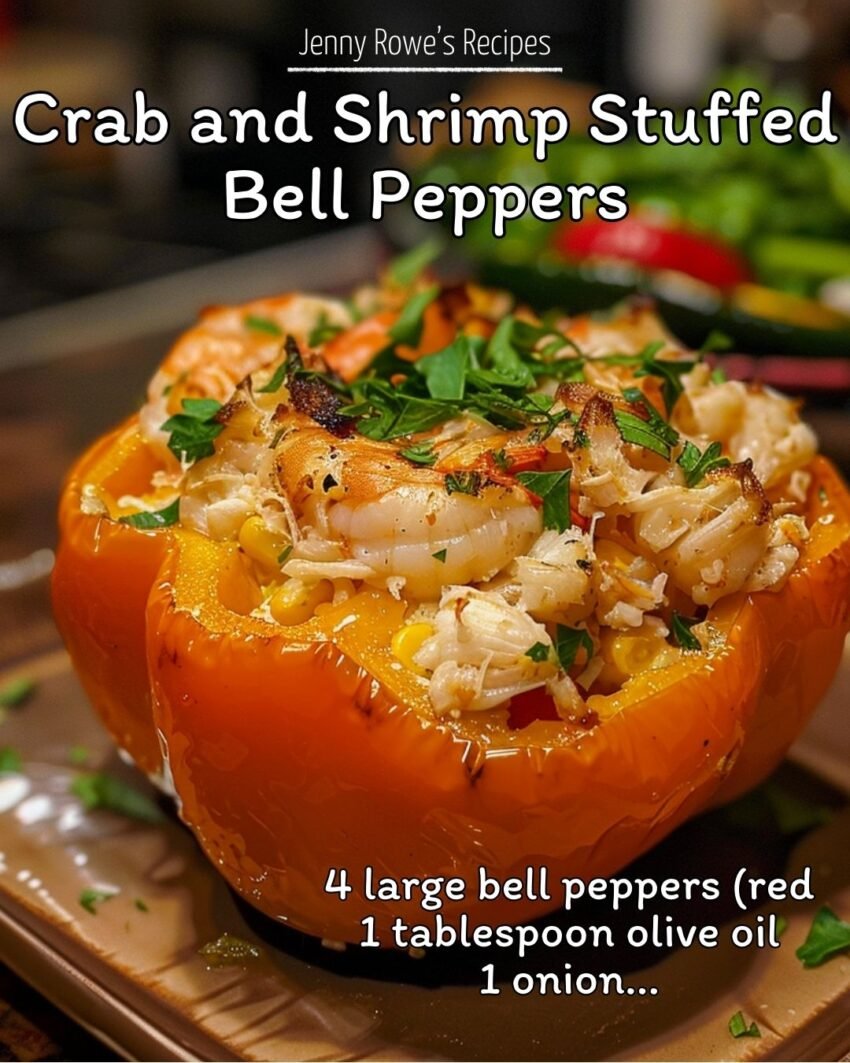 Imagine this: a cozy weekend evening, the aroma of garlic, butter, and fresh seafood filling your kitchen. You lift the lid off a baking dish and see vivid red and yellow bell peppers, their tops glistening, bursting with a creamy, flavorful mix of crab, shrimp, and herbs. You take a bite — the tender seafood perfectly complemented by the sweetness of roasted peppers — and instantly, your taste buds are dancing.